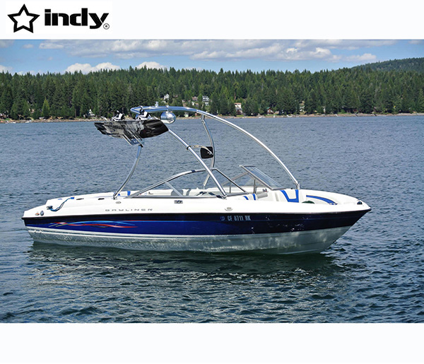 The Liquid Pro wakeboard tower, fully welded, rock solid Double top bar section, stands out from the crowd. It has been on the market since its release in 2010. It was design by Indy to close the gap between Universal fit and custom made OEM factory towers. Using the Indy IP2 tower system and the AU innovative patent rotating mounting deck mounts has allowed us to create a unique wakeboard tower that is universal fitting, flows with the lines of your boat, looks clean and smooth fittings just like a factory tower that comes on new boats.