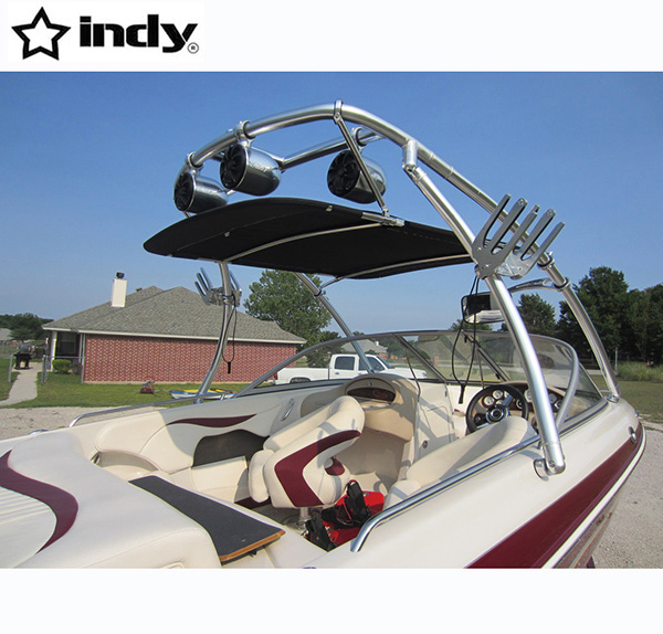This tower looks like your boat came brand new out of the factory with it, as there are NO exposed bolts, No drilling to the top section. The top bars are double fully welded and super strong, No telescopic top inserting legs to scratch and slide in and out whilst trying to install like all other brands with there tops and drilling and bolting up. This is truly as custom factory tower that will still adjust to suit your boat using our Indy IP2 tower system we developed. The system allows for a rock solid tower for towing you friends and family. No other tower uses this easy to install factory tower.